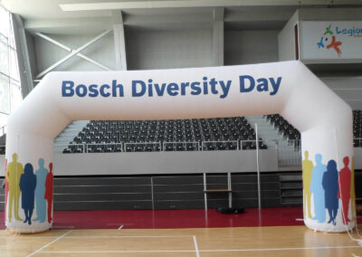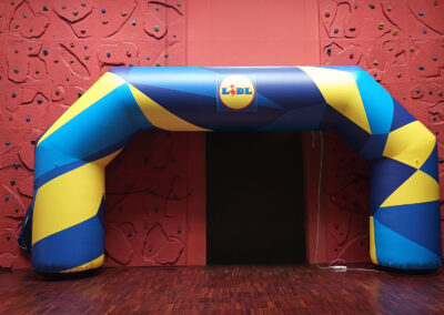 Świetnie sprawdzają się jako element scenografii eventowej, punkt startowy lub wejście na teren imprezy. Duża powierzchnia reklamowa umożliwia efektowną prezentację identyfikacji wizualnej — od logo po rozbudowane grafiki.