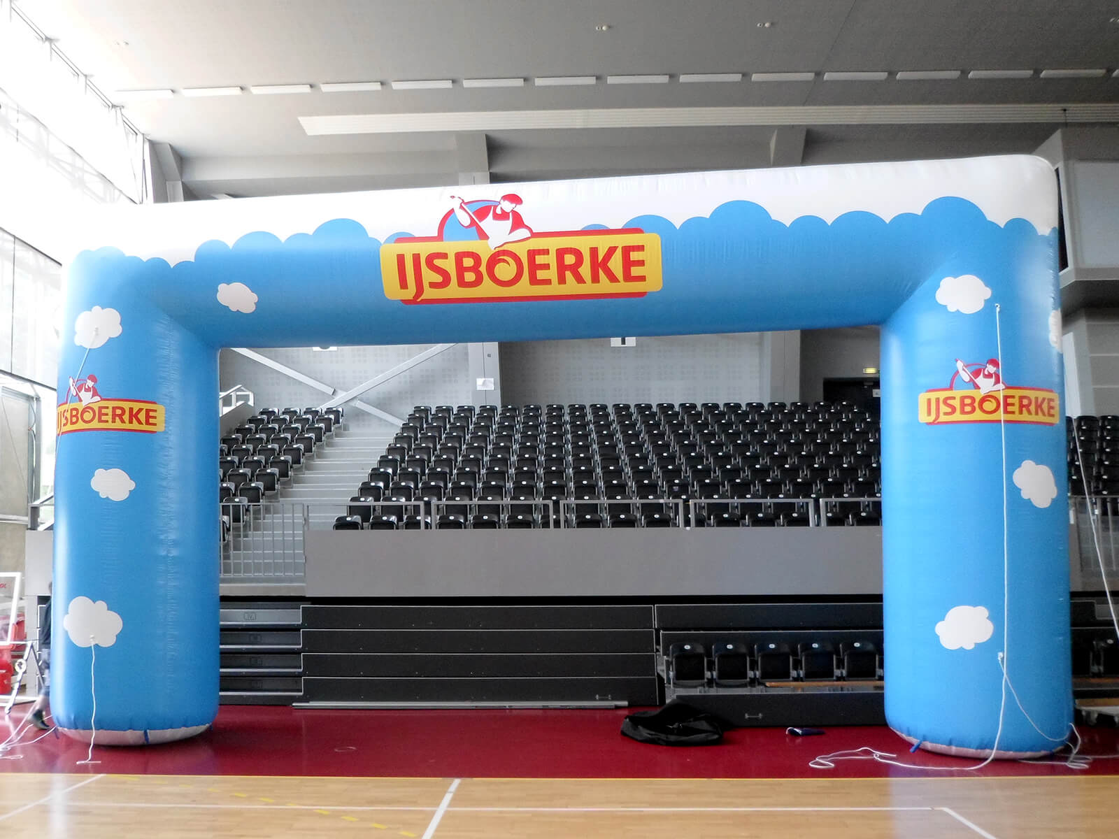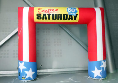 Duża, płaska powierzchnia pozwala na pełne wykorzystanie potencjału nadruku — logo, hasła i grafiki są doskonale widoczne nawet z dużej odległości. Bramy prostokątne świetnie sprawdzają się jako wyraźne punkty startowe, mety lub wejścia na teren wydarzenia.