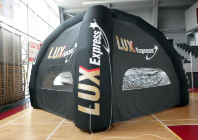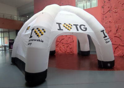 Namioty reklamowe Pająk to pneumatyczne konstrukcje o charakterystycznym kształcie, które łączą stabilność z łatwym montażem i efektowną ekspozycją reklamową.